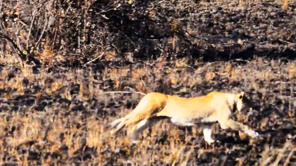 So, it is unusual to see the lion continue running for what seems to be quite a distance.