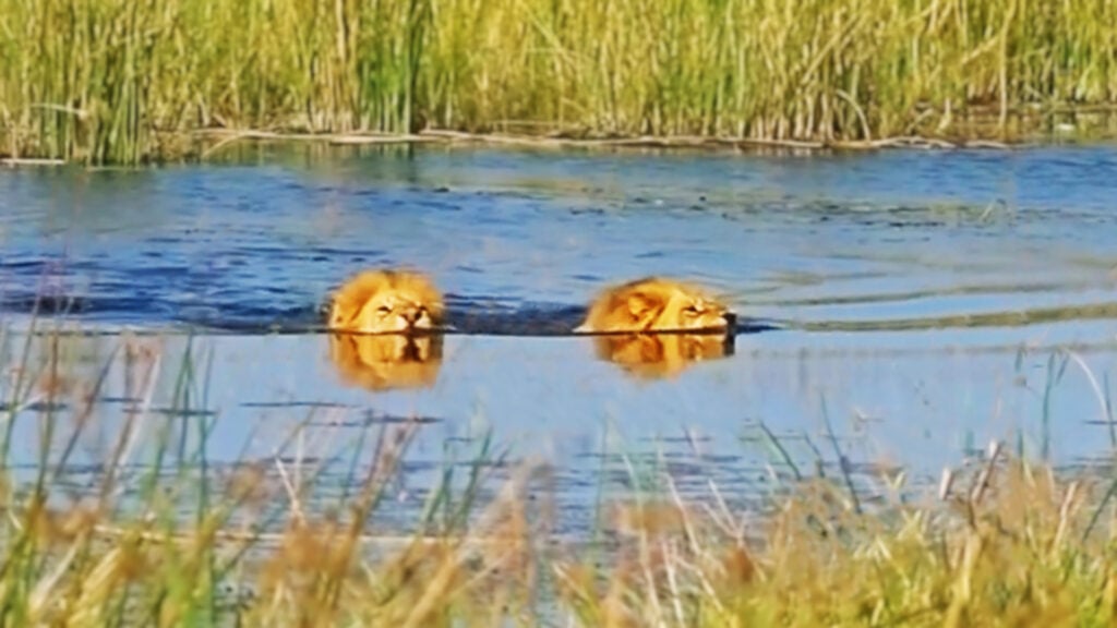 Travel designer Danielle Sheedy had her camera ready, unaware that she was about to witness something few ever do. The two male lions were preparing to take the plunge!