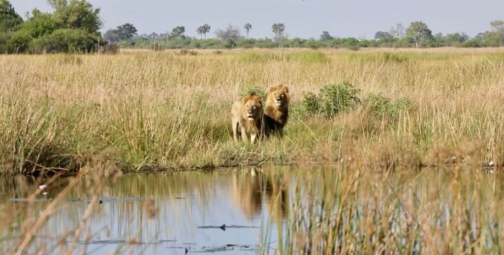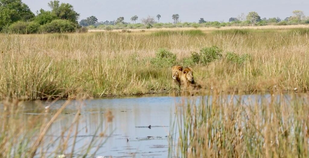 Life in the wild often demands flexibility, especially in areas like Selinda, where seasonal floods and shifting river systems can reshape the landscape overnight. With their path forward seemingly cut off, the lions had to make a choice.