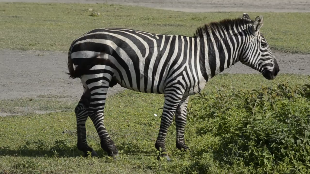 She crouched down as she walked, stalking her desired prey with a focused gaze. The zebra remained oblivious to her presence. Francis, however, was filming every moment.