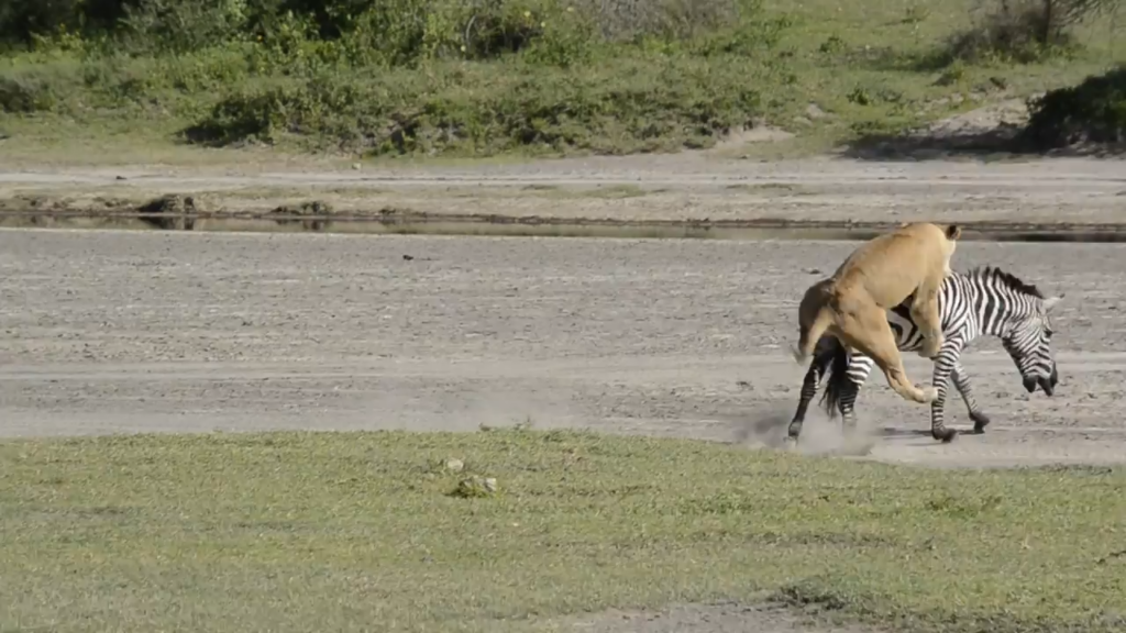 This lion, however, managed to catch the zebra completely by surprise. A successful hunt requires precise timing, and this is exactly what the lioness had to her advantage.
