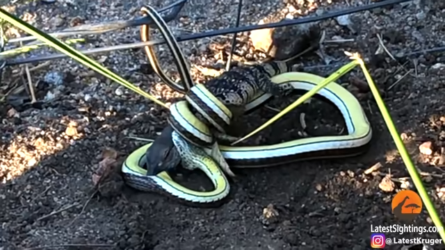 The lizard wriggled and tried to use every free appendage to retaliate against the snake’s vicious onslaught.