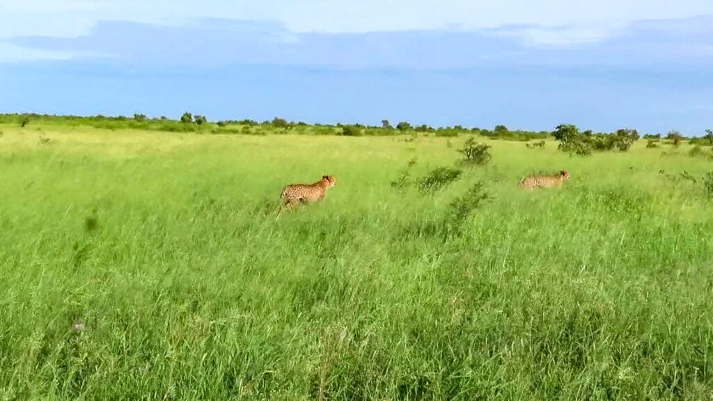 In Steyn’s footage, the cheetah’s contact calls can be heard clearly, and honestly, they are not a sound most people would expect a cheetah to make. Cheetahs communicate with each other by using high-pitched chirps that almost sound like a bird call.
