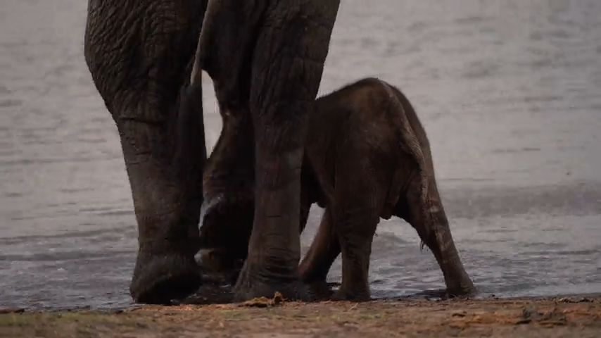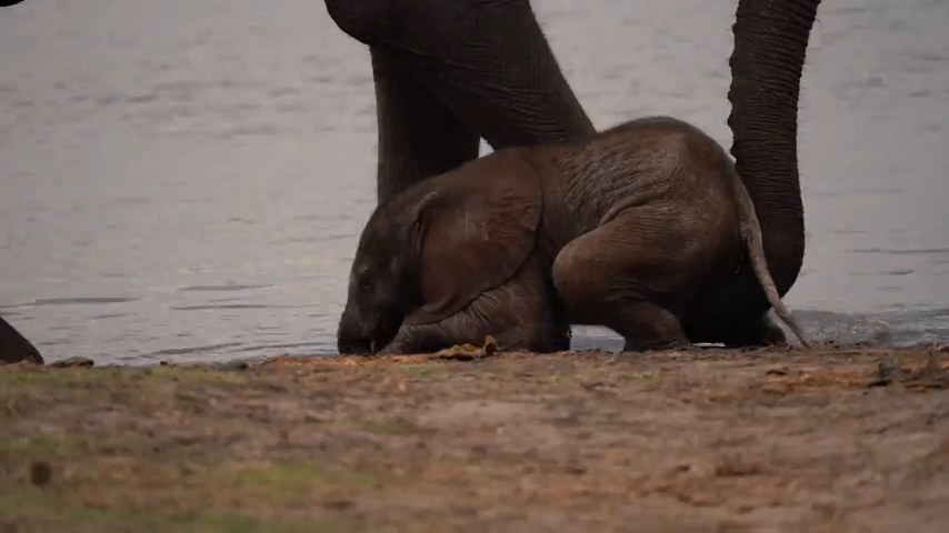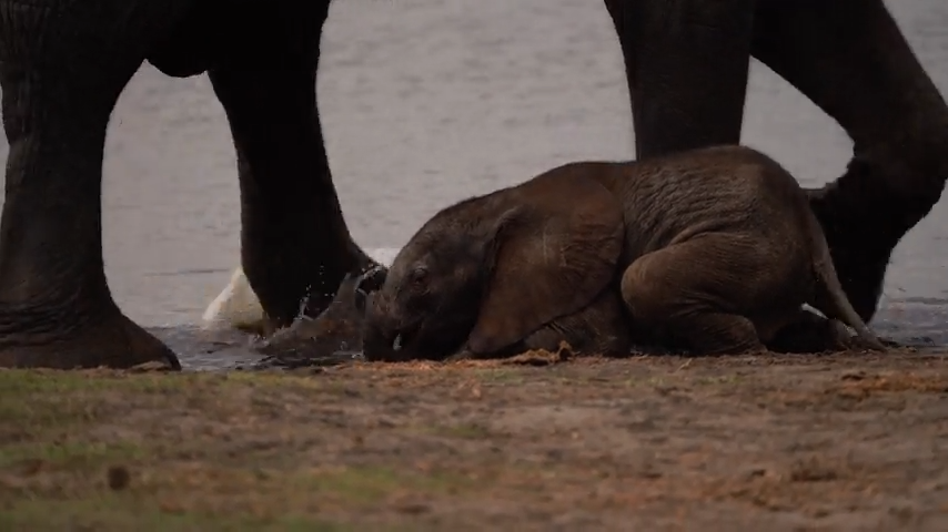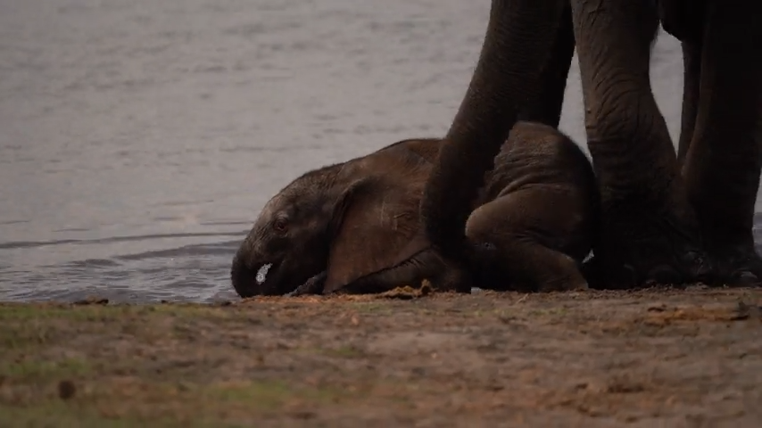 Calden Smith caught the very first moments of this elephant calf on camera as its mother gave it a helping hand to take its very first ever drink.