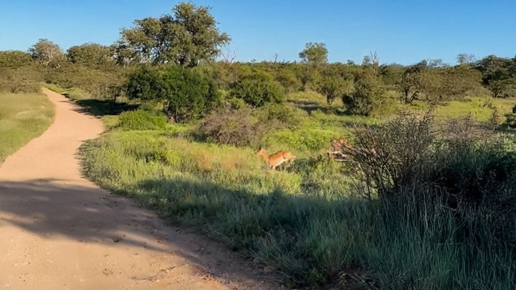 The dusty bushveld road meandered into the distance, and all was still until the impalas appeared from out of the thicket, just off the side of the road.