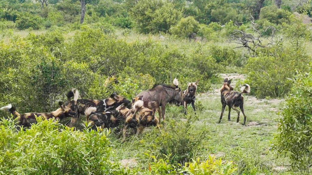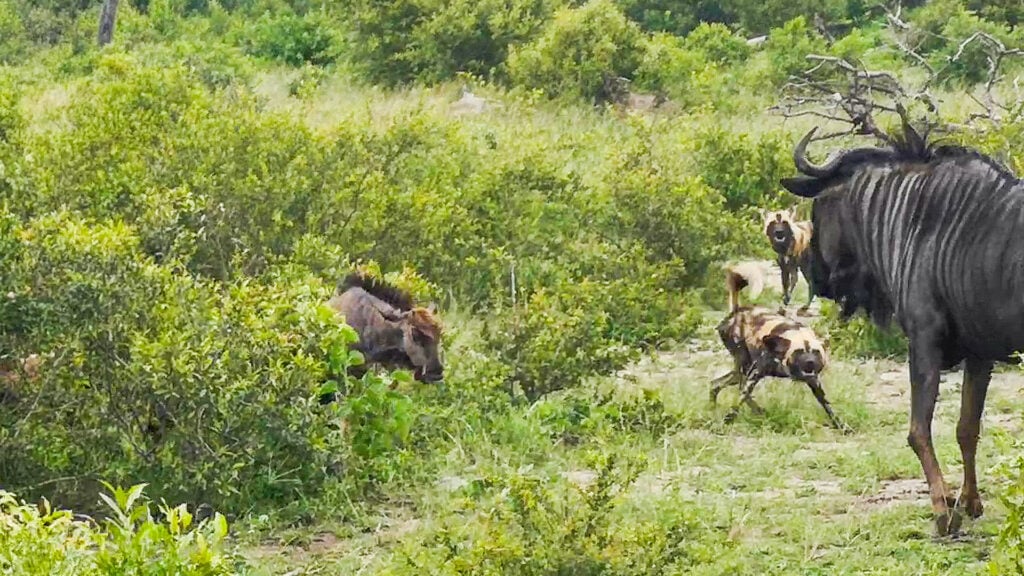Leslie Edgar spotted this pack in a terrible sighting that saw the dogs narrowing their gaze onto an unlucky wildebeest that was still only a baby. Despite all of its beauty, nature is often also cruel.