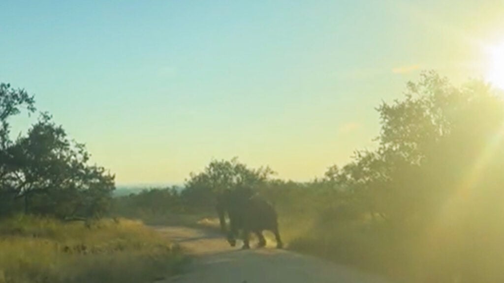 David Manachi caught this elephant charge on camera on the S26 road in the Kruger National Park, and was clearly nervous at the sudden appearance of the charging elephant as well, with good reason.