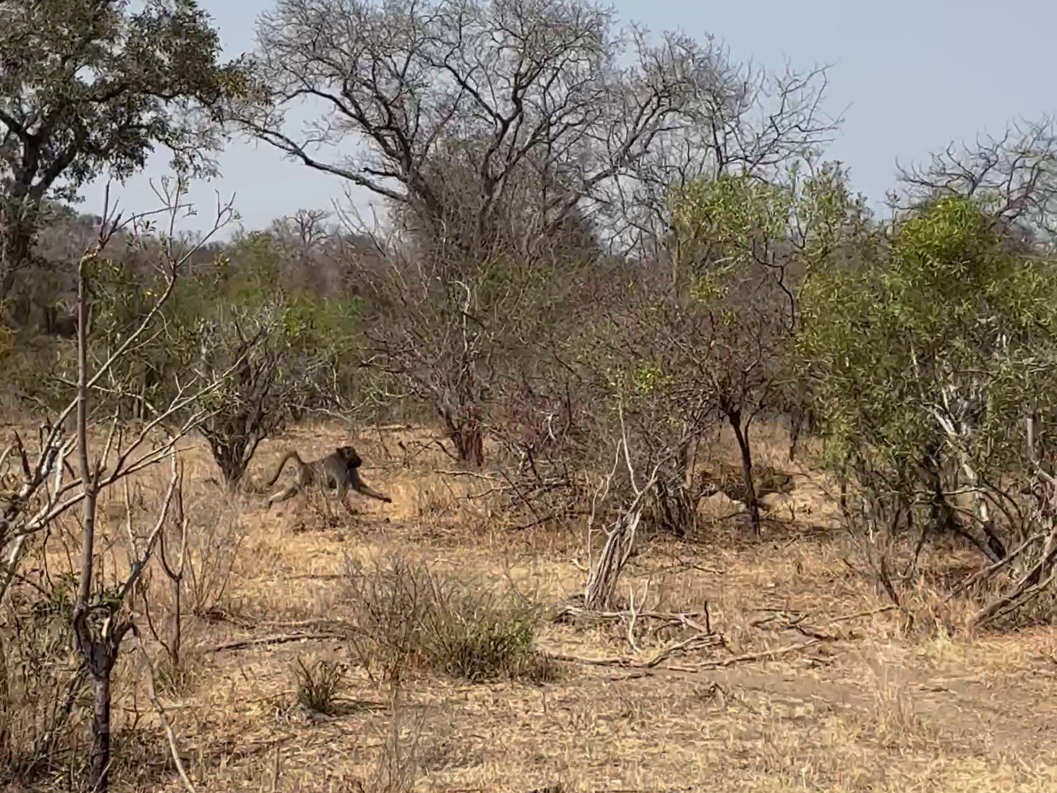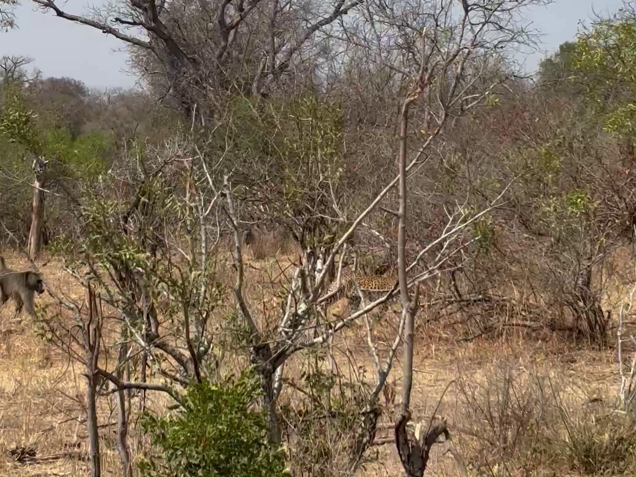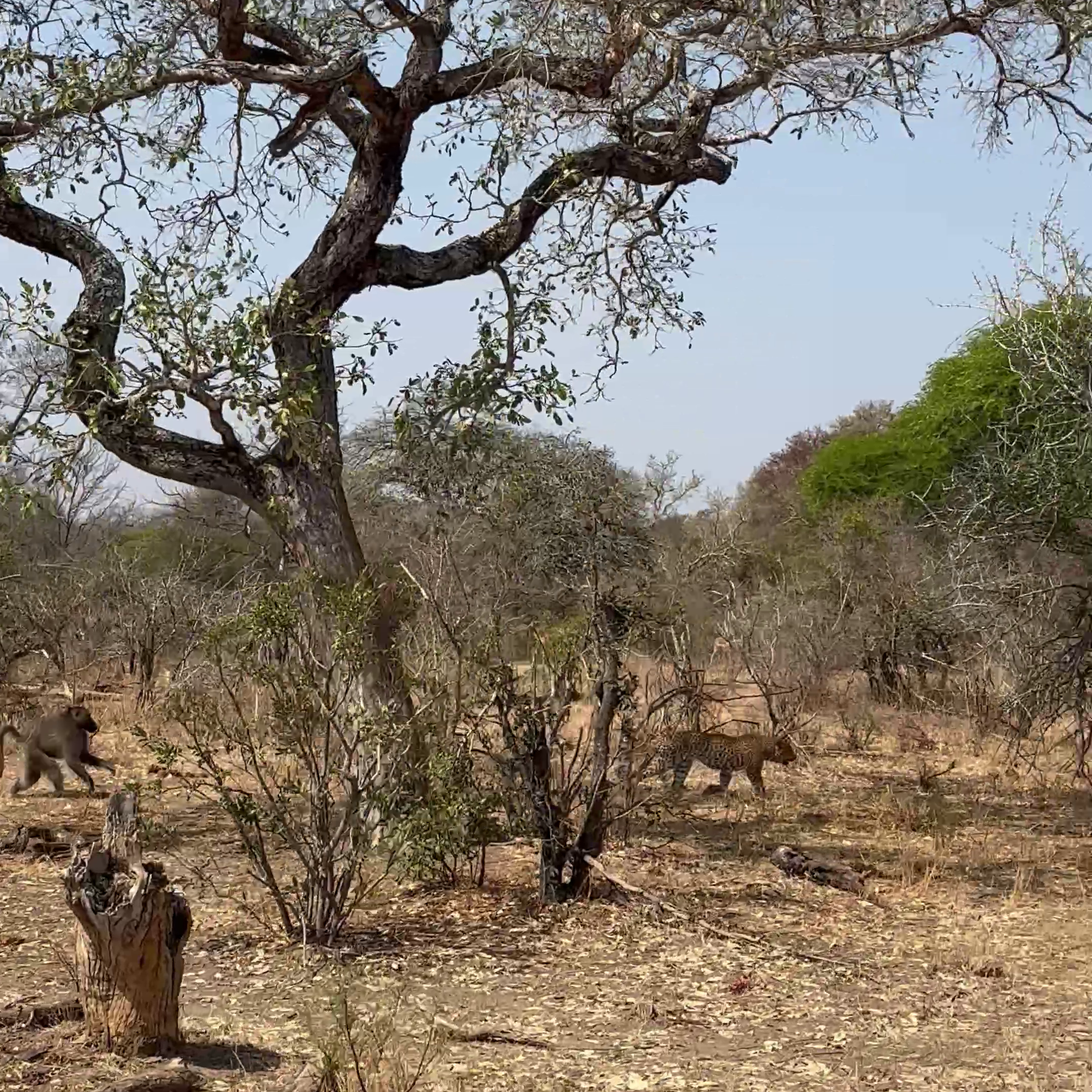 However, if you look carefully, you’ll see the leopard’s spotted cloak a few metres ahead of the baboon. Yes, the baboon is chasing the leopard and not the other way around, as you’d expect.