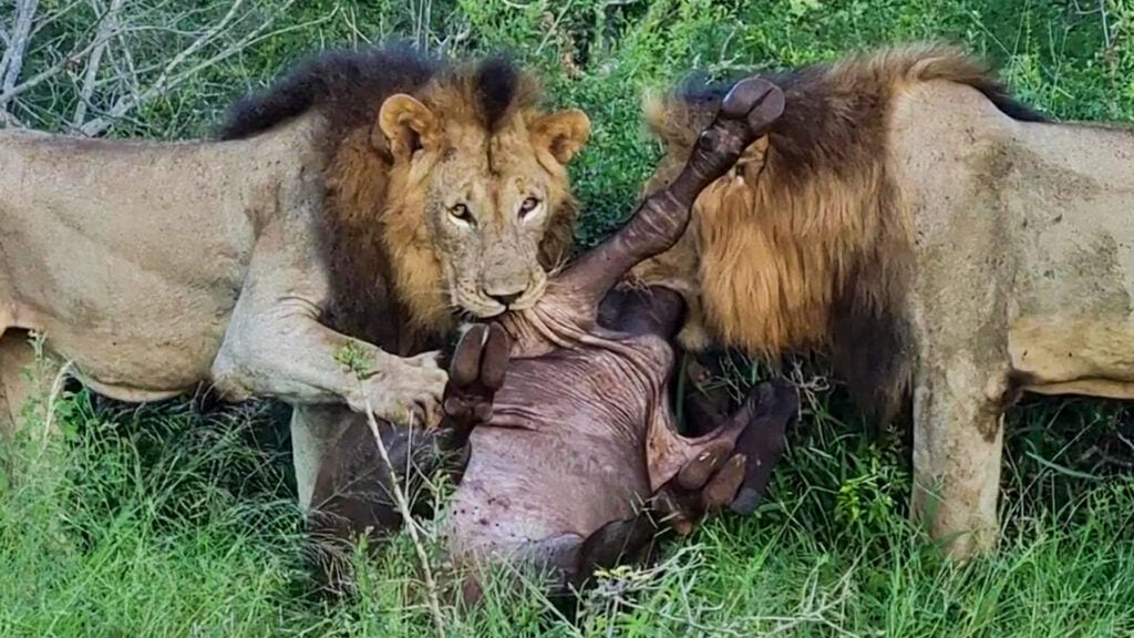 It wasn’t just courage which won the lions their prize. It was also strategy and teamwork. The lions had executed the perfect coordinated attack and it took just two of them to approach the herd and successfully come out with a kill.