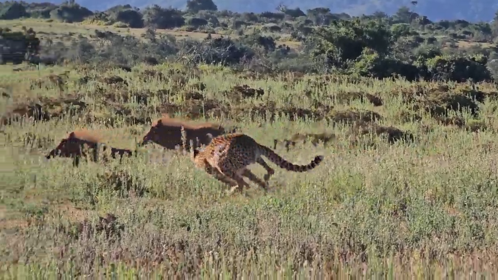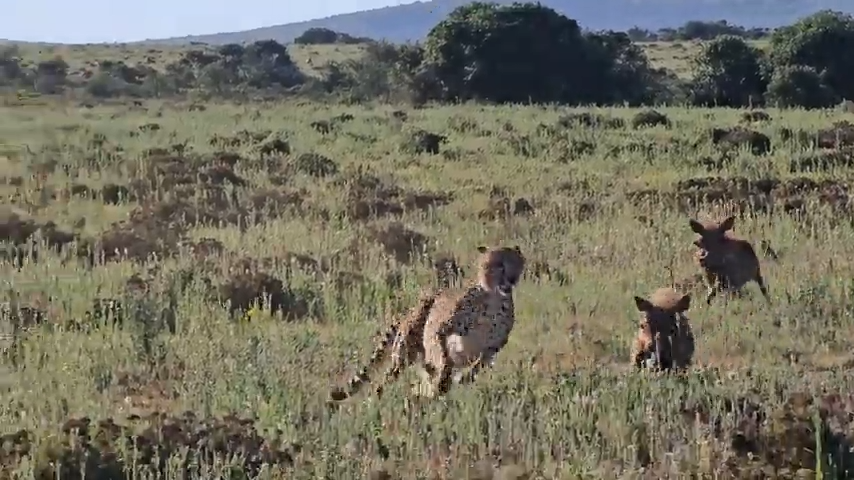 The tables were turned on this cheetah, when the intended prey, a warthog, suddenly became the pursuer!