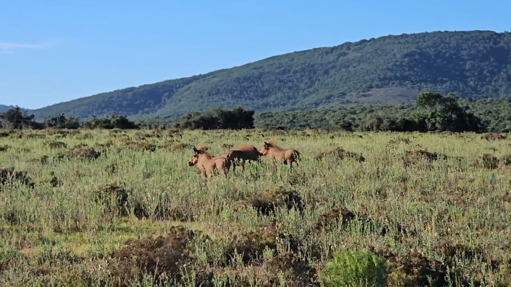The warthogs appeared to gloat in the aftermath of their victory. With the threat gone, the trio stood triumphantly against the backdrop of the bushveld terrain.