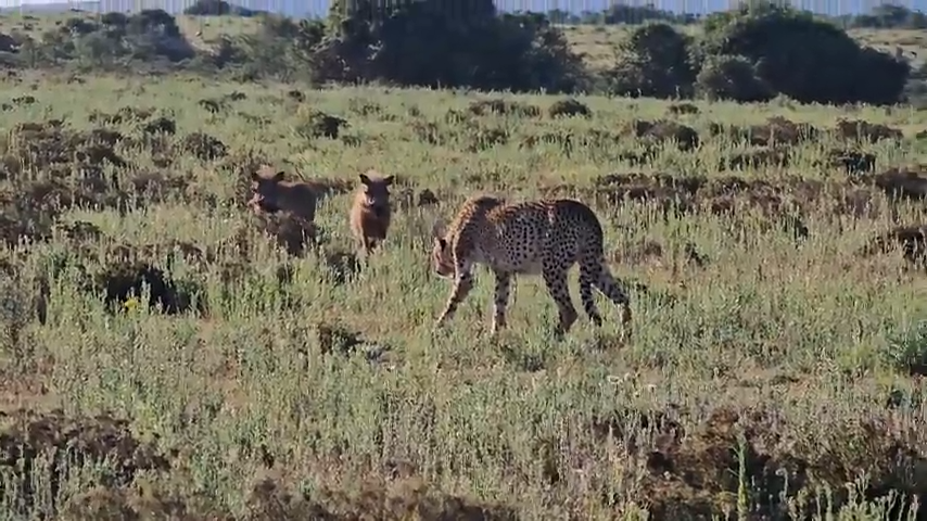 Warthogs successfully clear area of cheetah
