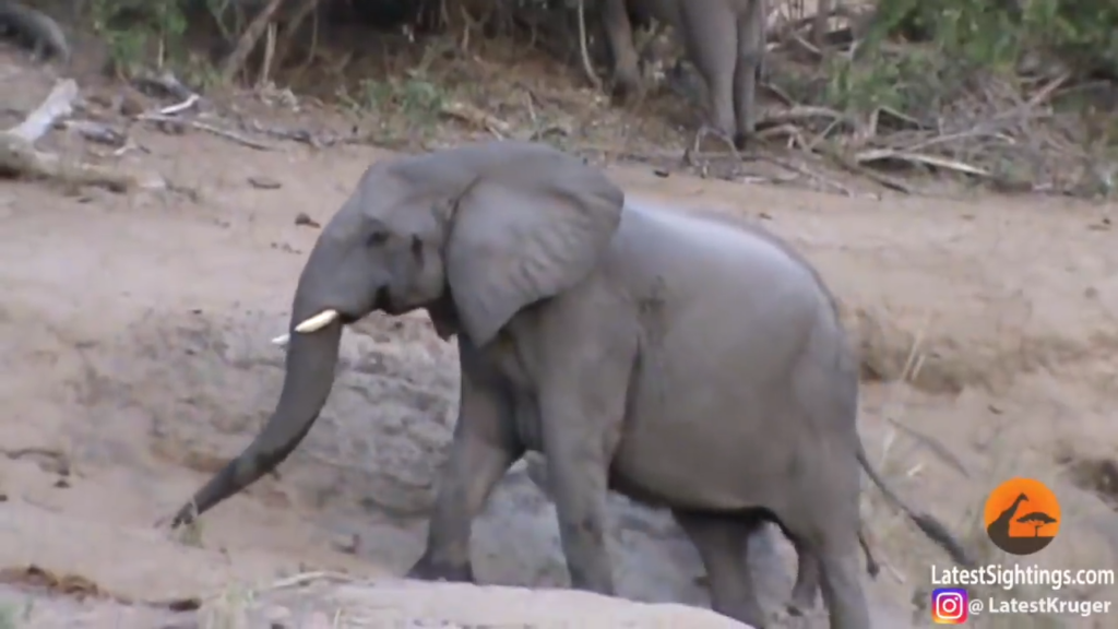 Van Vuuren said that he encountered a breeding herd of elephants crossing the Sand River. Noticing that the steep bank might prove challenging for the smallest elephant, he started filming.