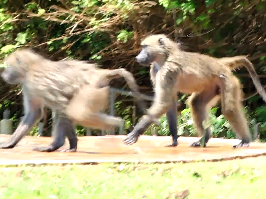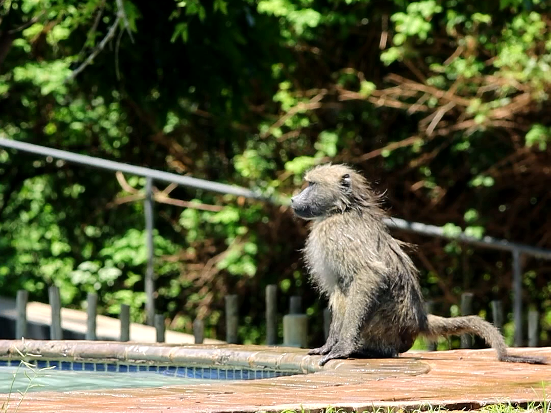 However, since most rivers and dams in the park are also home to crocodiles and hippos, the practice is not without risk. So, it was perhaps for that reason that Jacques spotted a troop of baboons at the camp swimming pool.