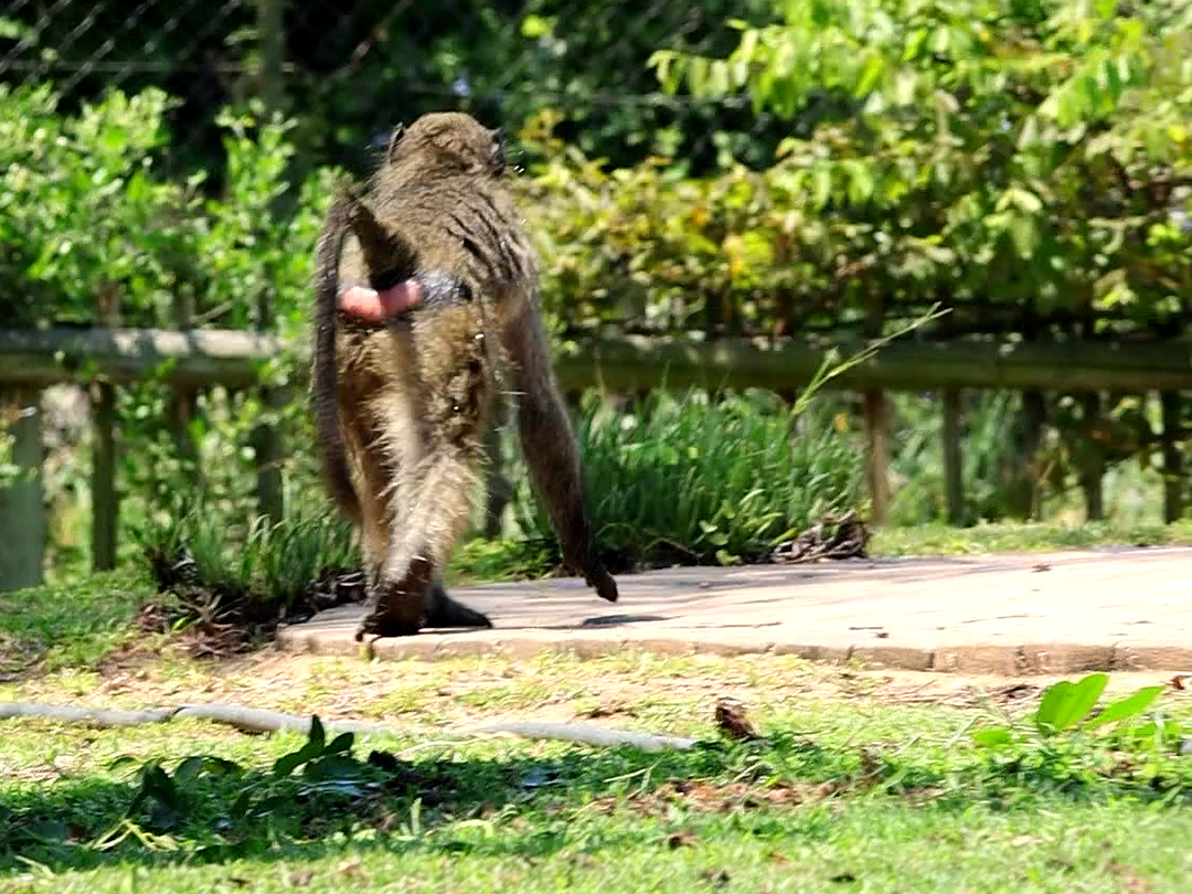 The baboon’s behaviour is clearly intentional, and it is obvious that the animal is out to enjoy itself.
