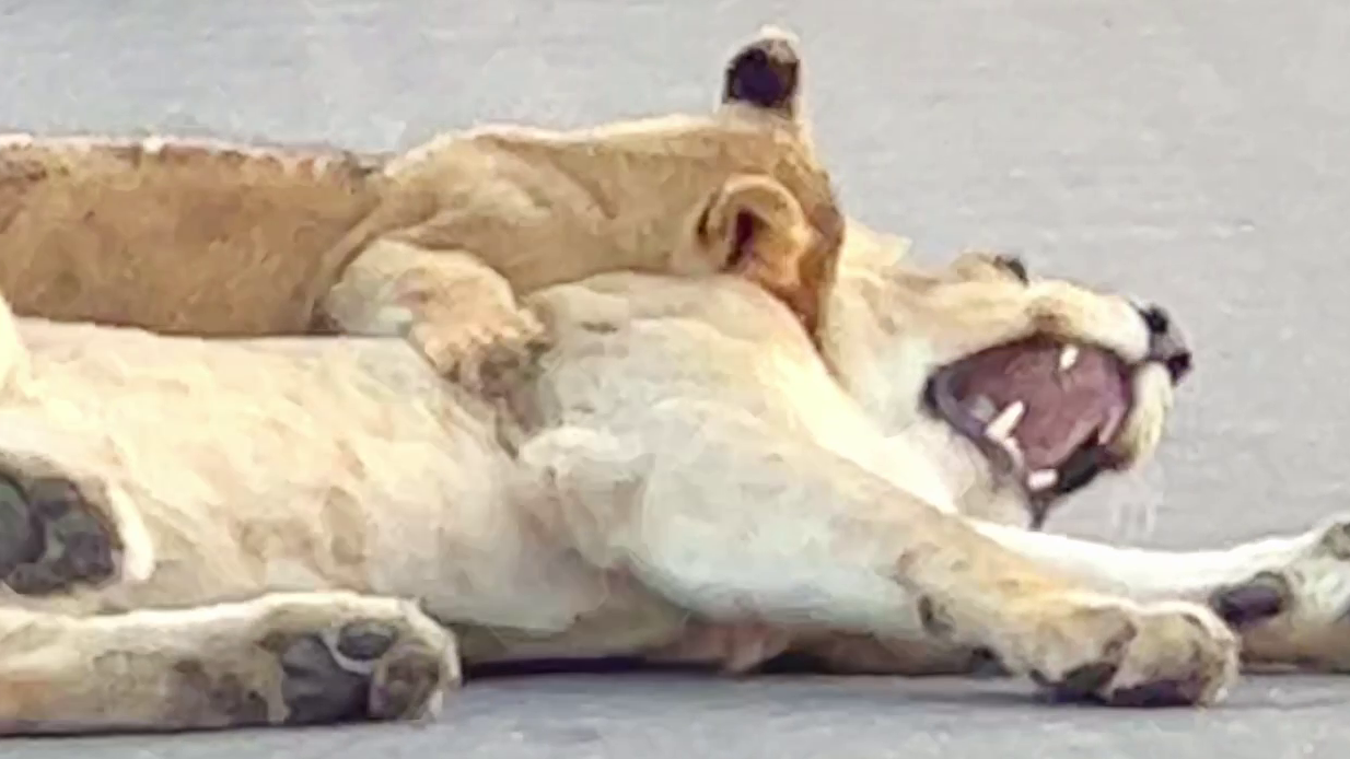 For the cub, anything that moves is considered fair game. For the rest of the pride, it looks like they’d all prefer a little peace and quiet.