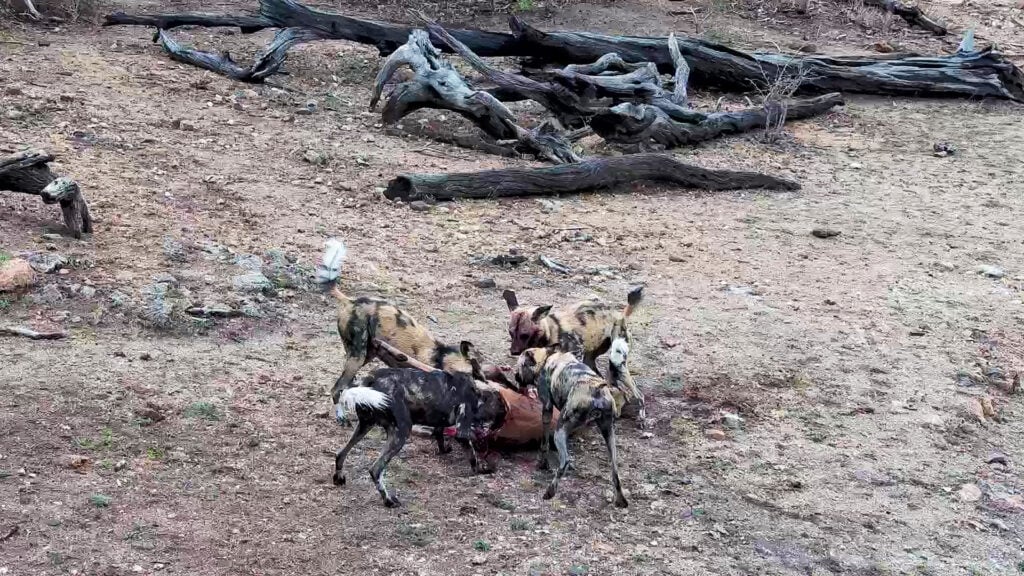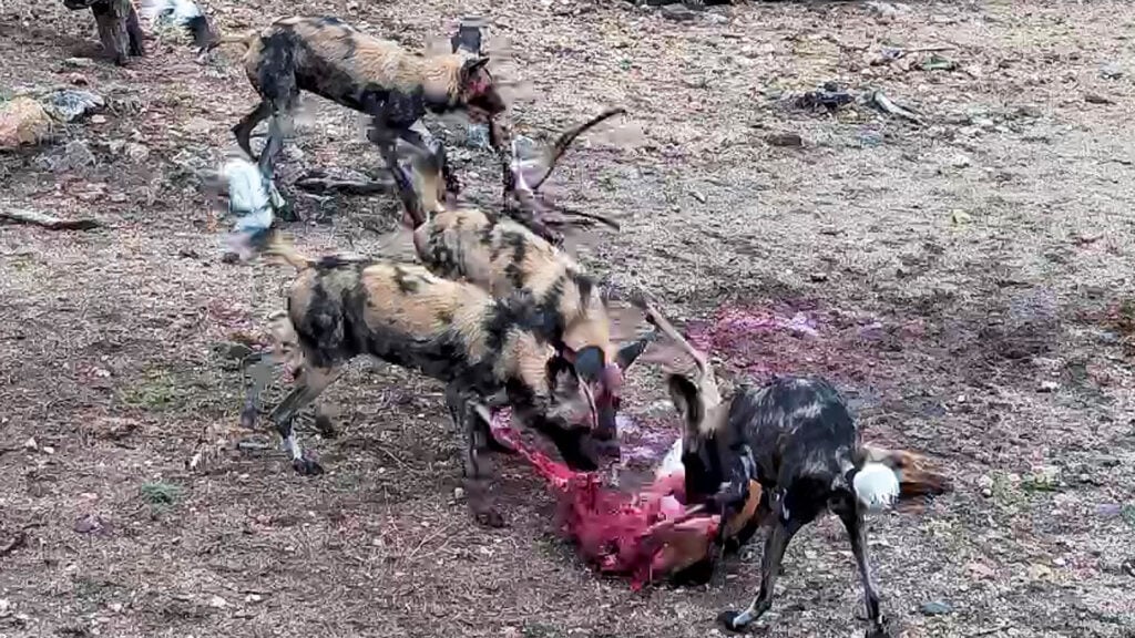 Just as quickly, the others descended to begin consuming the fresh carcass. Wild dogs continue to be incredibly dangerous, but despite their hunting successes, conflict with humans, and habitat loss, has contributed to them being considered endangered by the IUCN.