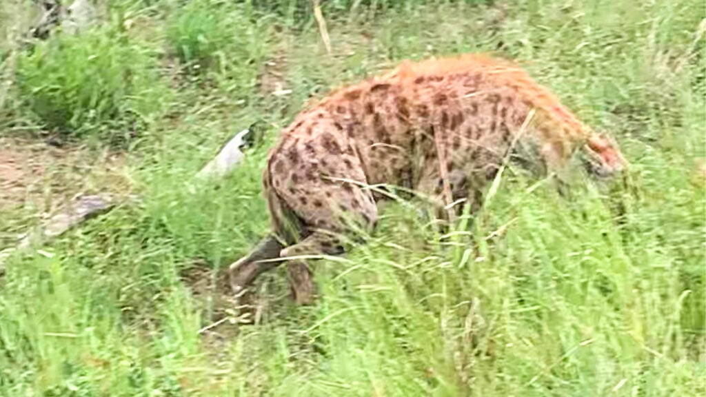 It could also have been by design on the hyena’s part, as there have been sightings of them following in the tracks of other predators in the hope that they might manage to steal a meal.