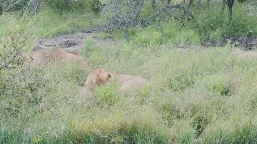 The video starts peacefully. We see three lions doing what lions spend most of their lives doing: sleeping.