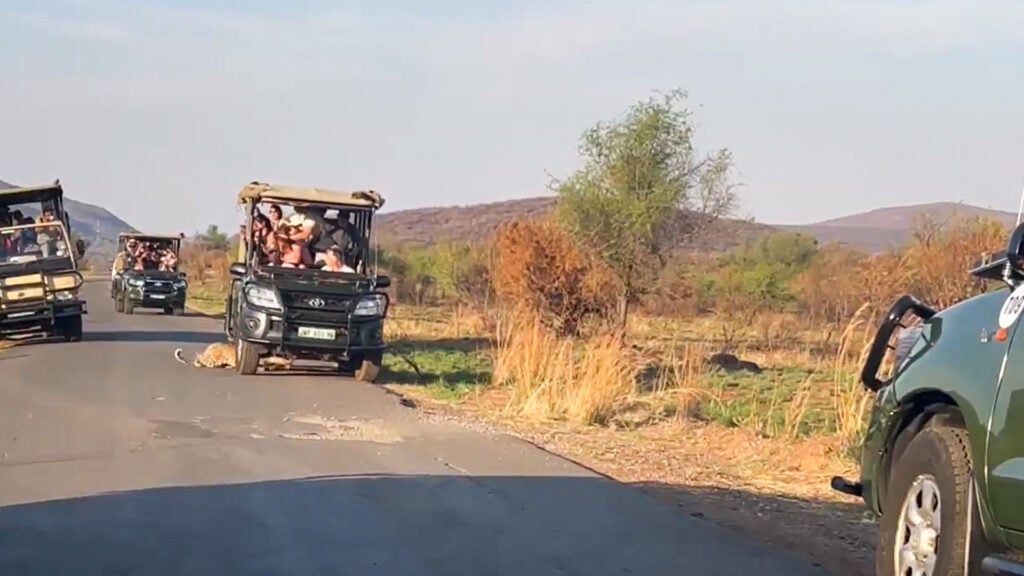 The motorists in the jeep expressed surprise as the leopard sought refuge beneath the car. A few vehicles were parked close by, and the spectators watched the jeep Kgodisa was under closely; certain that the leopard would seen emerge from the other side.