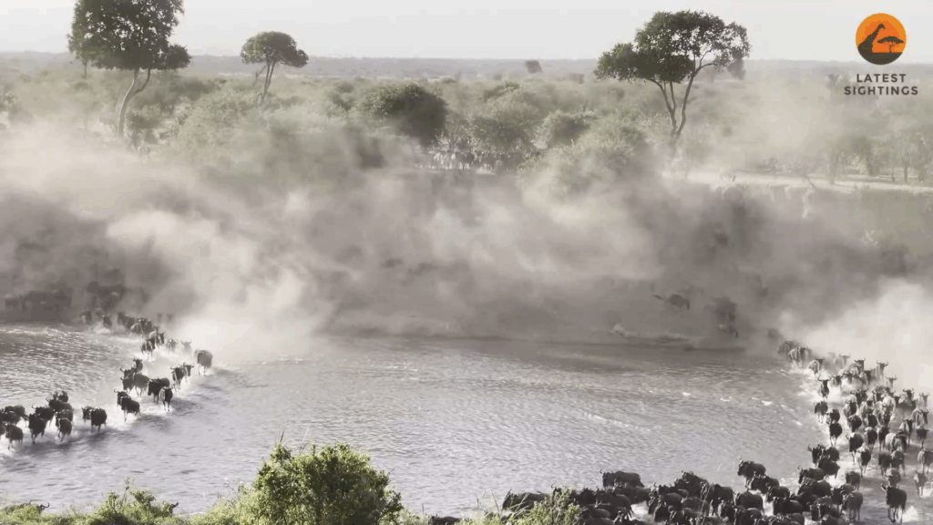 For those safely over, there is no pause for celebration. Instinct drives them relentlessly on. Soon, dust begins to fill the air as thousands of sharp hooves shred the soil.
