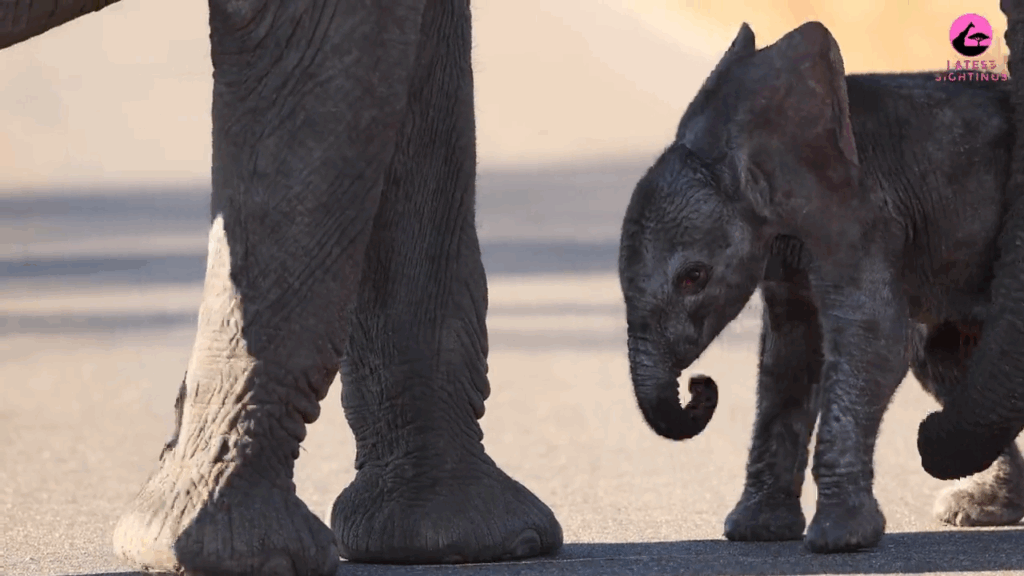 What is strikingly evident is the mother elephant’s support, as her calf staggers forward, wobbly and unsure.