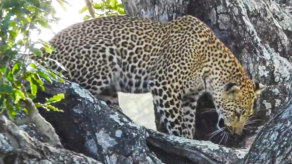 Tree becomes a jungle gym of sorts for young leopard