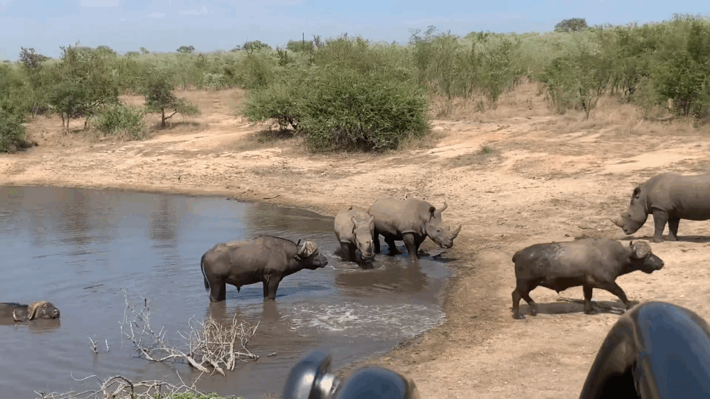 The buffalo still stood its ground for a little longer, reluctant to let the rhino win the face-off, but it did eventually think better of it and decide to stand down.